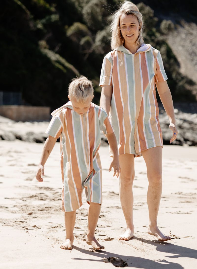Beach days made easy — dry, zip, and go in our locally made Hooded Jumpsuit Towels.